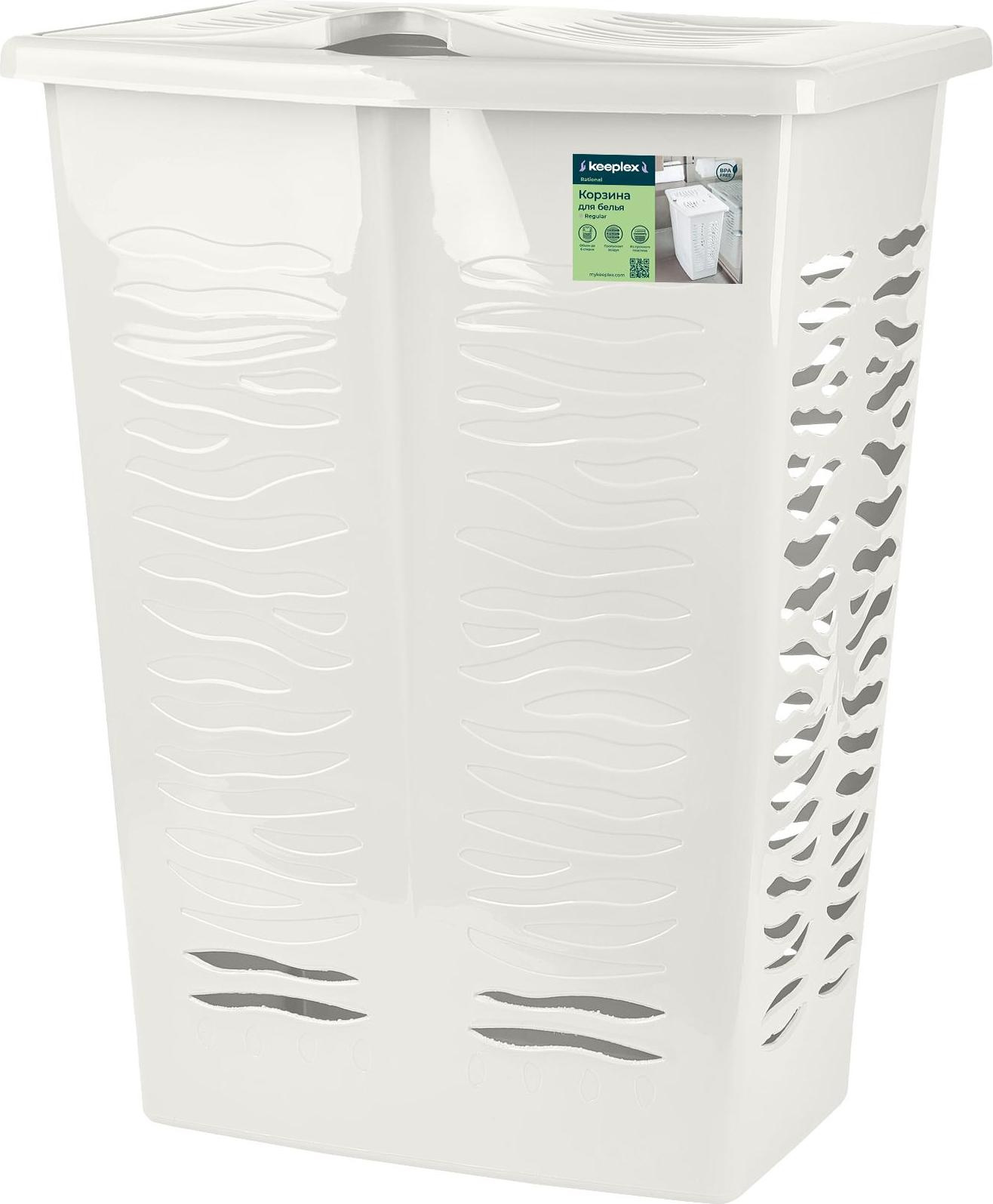 Корзина для белья Keeplex Regular с откидной крышкой 42л - классическая по форме в коллекции бельевых корзин Keeplex Regular. Подойдет даже для небольших ванных комнат засчет вытянутой формы. Объём корзины 42л идеально подходит для сбора и хранения белья на всю семью. Сделана из легкого и прочного пластика. Привлекательный дизайн в виде полосок зебры прекрасно впишется в любую обстановку ванной комнаты. В самом низу лицевой стороны бельевой корзины предусмотрены прорези для вентиляции, что позволит скрыть от глаз ненужные предметы. Основные же отверстия для проветривания расположены на боковых и задней стенках корзины. Широкая и устойчивая крышка открывается на 270 градусов, ее можно использовать и в качестве дополнительной полезной поверхности. Благодаря широкому канту по верхним краям корпуса корзину легко поднимать и переносить. Входит в коллекцию бренда Keeplex "Regular", что позволяет подобрать различные предметы для дома в едином стиле. Габариты корзины: 39,8х29,9х53,7см.