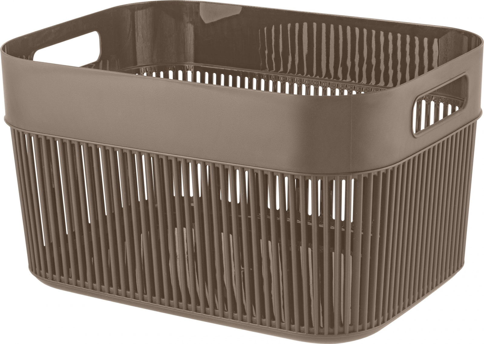 Корзина Keeplex 12л с ручками — стильное решение для хранения в ванной, на кухне или в гостиной. Изготовлена из пищевого пластика, устойчива к влаге и легко моется. Подходит для фруктов, сладостей, белья, косметики. Скругленные края ручки не будут врезаться в ладонь. Прочный и легкий корпус с вертикальными рейками обеспечивает проветривание содержимого. Минималистичный дизайн с прямыми линиями, мягкими углами и природными оттенками украсит любой интерьер. Матовое soft-touch покрытие создает приятные тактильные и визуальные эффекты. В коллекции представлены: прямоугольные корзины 3л, 5л, 12л; квадратные корзины 9,5л и 19л. Габариты: 338х246х190 мм.