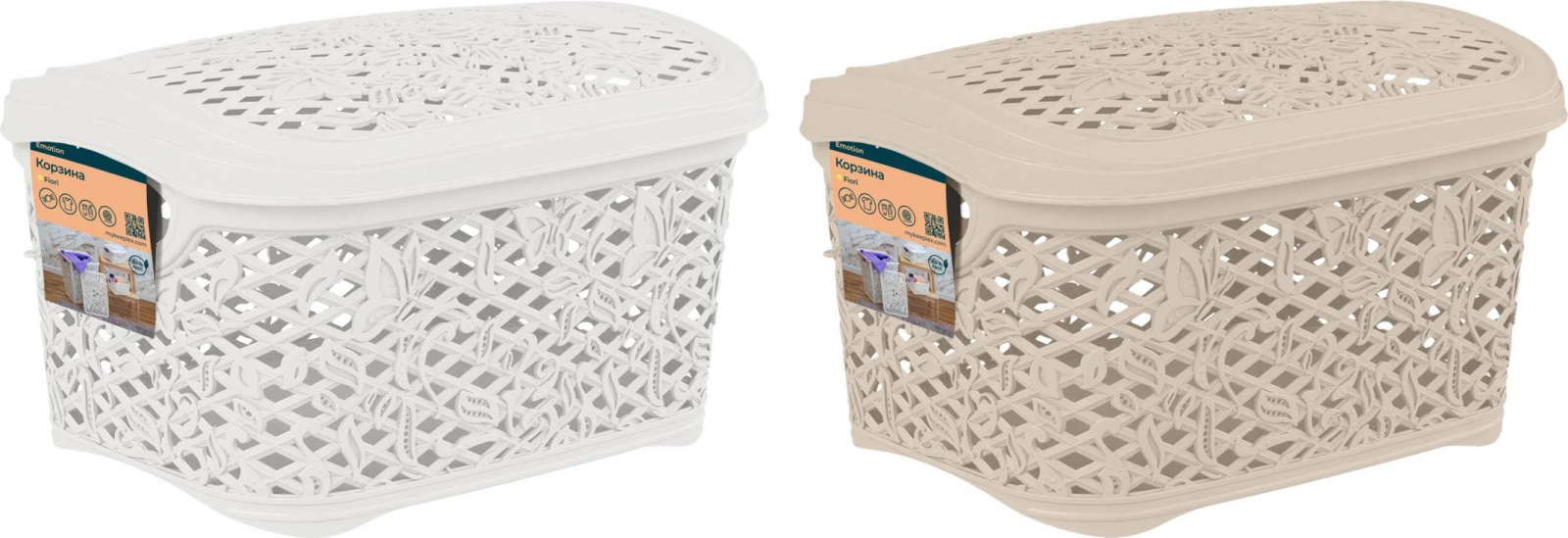 Корзинка для хранения Keeplex коллекция Fiori, с цветочным дизайном, с крышкой, пластиковая, 3,3л, прямоугольная, 242х180х140 (KL4012)