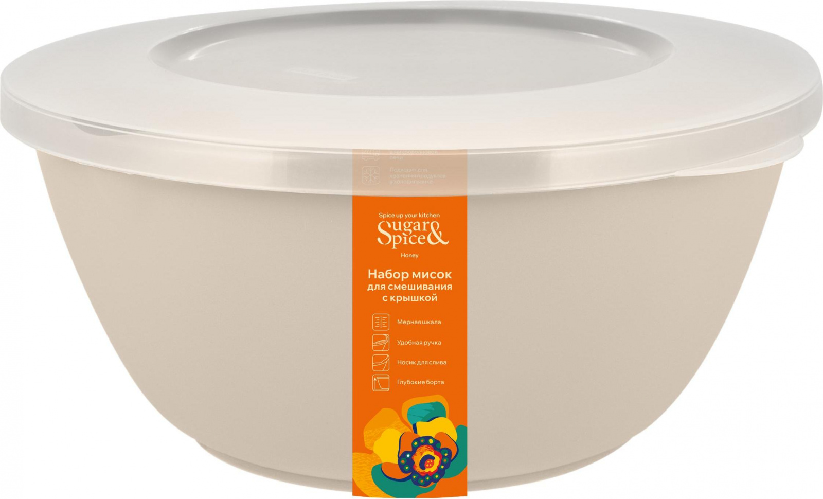 Салатник Sugar&Spice коллекция Vanilla, с крышкой, пластиковый, 1,7л, 195х182х96 (SE1866)
