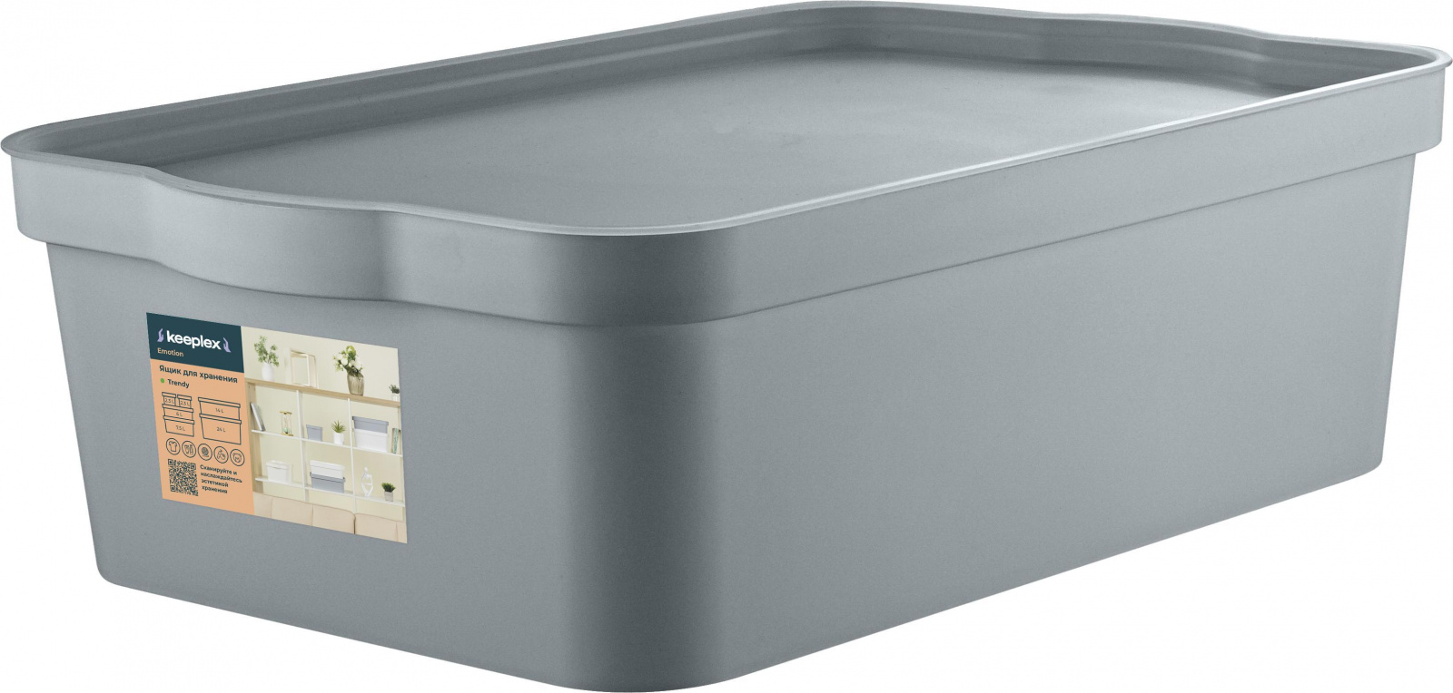 Ящик для хранения Keeplex Тренди 14 л с крышкой 45,2х29,8х14 см - отличное решение для интерьерного хранения домашних вещей. Универсальный - подходит для хранения продуктов питания, косметики, одежды, игрушек, спортивного инвентаря и многого другого. Крышка ящика свободно открывается и закрывается без защелкивания, что позволит открывать ее одной рукой. Эргономичные ручки выступы плотно держатся в руке. Матовое soft-touch покрытие создает приятные тактильные и визуальные эффекты. Полупрозрачный корпус позволяет видеть содержимое и быстро ориентироваться в ящиках на полках. В коллекции "Тренди" ящики объёмов 2,3л, 6л, 7,5л, 14л, 24л. Можно выстраивать системы раздельного хранения: контейнер для папы, контейнер для мамы и контейнер для детей. Плоские крышки со специальными пазами позволяют устанавливать ящики друг на друга, создавая модульную систему хранения. Также ящики можно сложить друг в друга для удобного хранения или транспортировки. Габариты ящика 14л: 145,2х29,8х14 см. Обратите внимание, полезная глубина от дна до крышки – 12 см.
