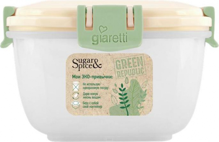 Контейнер для продуктов Sugar&Spice коллекция Green Republic, с защелками, герметичный, 1л, квадратный, 165х165х90 (SE2243)